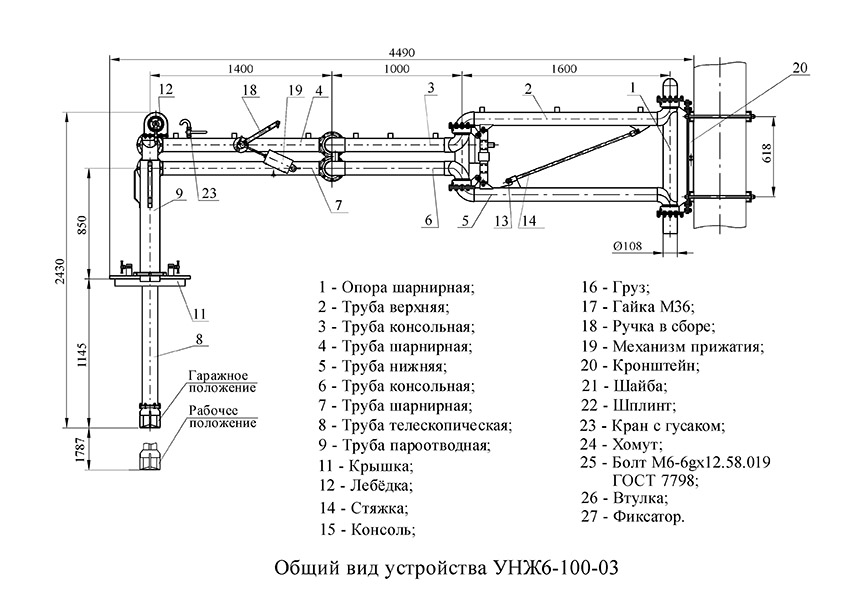 Устройство УНЖ6-100-03 предназначено для герметизированного верхнего налива нефти и ;нефтепродуктов в железнодорожные цистерны и отвода паров из зоны налива.