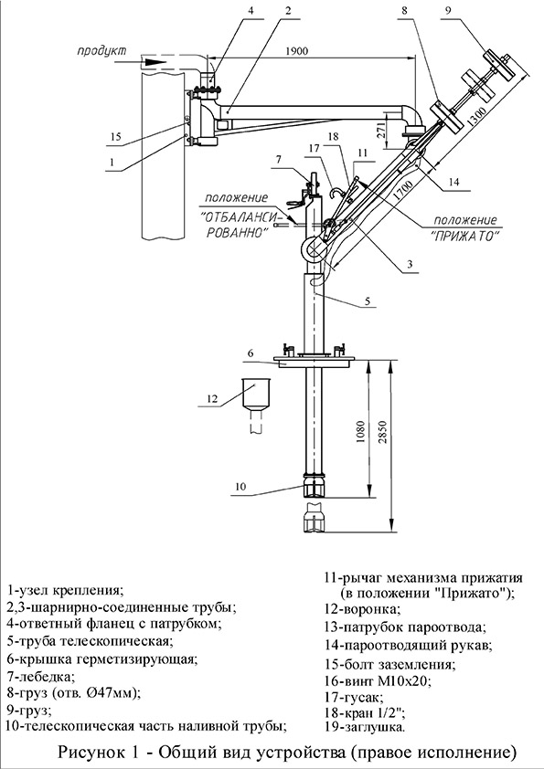 Устройство УНЖ6-100-08 предназначено для герметизированного верхнего налива нефти и светлых нефтепродуктов в железнодорожные цистерны и отвода паров из зоны налива.